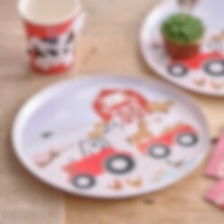 8 stk. paptallerkner med sjove og flotte motiver af forskellige dyr på gården. Tallerknerne er 24 cm i diameter.