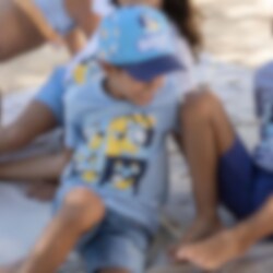 Smuk kasket til børn i blå farvenuancer med den søde hund Bluey på. Kasketten er lavet af 100% polyester. Kasketten har en omkreds på 53 cm og kan justeres bagpå, hvilket gør, at den som regel passer til børn i alderen ca. 4 til 6 år.