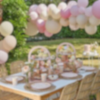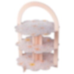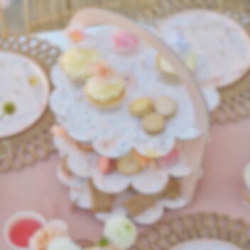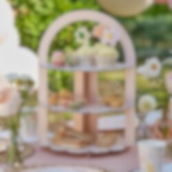 Fremhæv det bedste på dit festbord med vores pastelfarvede Pink Floral kagestativ. Dette elegante 3-etagers stativet er det perfekte midtpunkt for at servere godbidder under stilfulde fejringer.