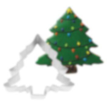 Stilfuld kagedåse af rustfrit stål med et juletræ, perfekt til julebagning. Kageformen måler ca. 7,5 x 9,5 cm.