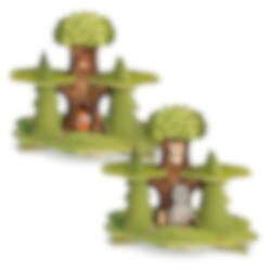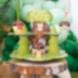 Skab en magisk følelse med denne vidunderlige muffinstativ, der forestiller et træ i skoven, dekoreret med charmerende små skovdyr både på forsiden og bagsiden.