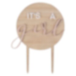Denne vidunderlige cake topper i træ, med teksten "It's a Girl", er den perfekte dekoration til din babyshower eller gender reveal fest. Med målene 12 x 18 cm og fremstillet af holdbart træ, vil den tilføje en charmerende touch til din kage.
