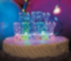 Cool tårtdekoration som blinkar i tre olika färger med texten "Happy Birthday". Sätt denna på tårtan för att skapa en riktig wow faktor. Du sätter på ljuset på en on/off knapp och kan även välja vilket blink ljuset ska ha. Dekorationen är ej vattentålig och batterierna som kommer med är ej ersättningsbara. Tårtdekorationen är ca 7 x 12 cm stor.