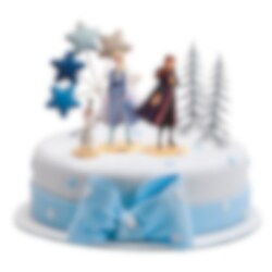 Super flot kagedekorationssæt i et smukt Frost 2 tema. Brug dette sæt, når du vil gøre kagen ekstra spektakulær til fødselsdagen. Sættet indeholder: