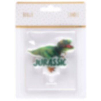 Kagelys med motivet af en dinosaur T-Rex og teksten Jurassic. Cool at have på din kage eller dit bagværk. Lyset måler 7,5 x 6 cm.