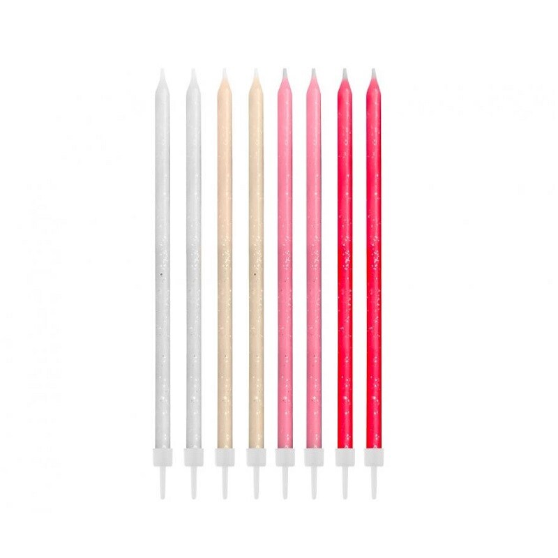 Forvandl enhver fest til en funklende begivenhed med disse 24 glitrende kagelys i en smuk lyserød blanding. Disse 14,5 cm høje kagelys er en perfekt kombination af tradition og trend, og de vil tilføje en touch af glamour til din kage.