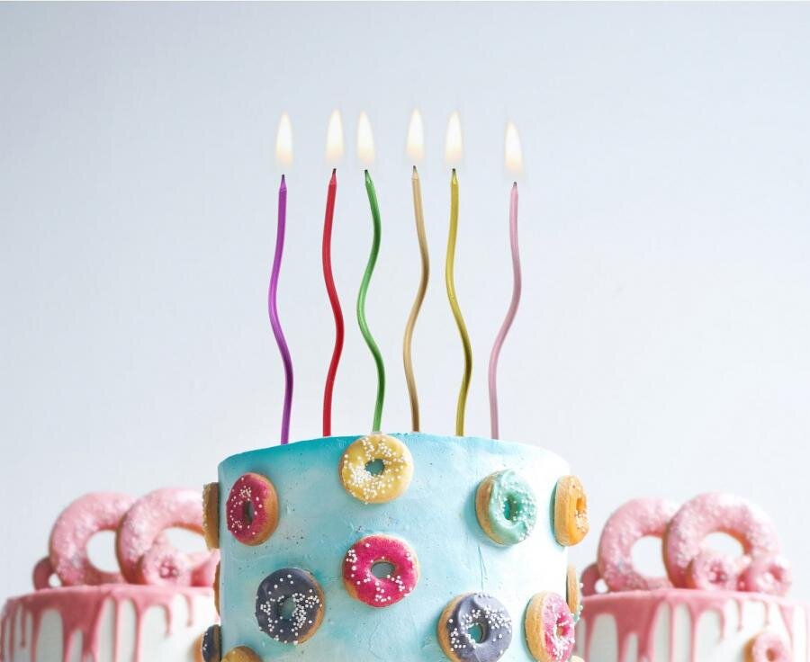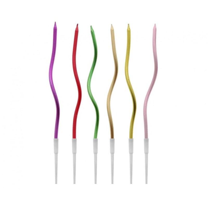 Tænd kagen med disse vidunderlige bølgede kagelys i forskellige metalliske farver! Hvert lys er designet til at give kagen det lille ekstra. Med en højde på 16,5 cm og med holder inkluderet, bliver disse lys en enkel og elegant detalje på børnefødselsdagen.