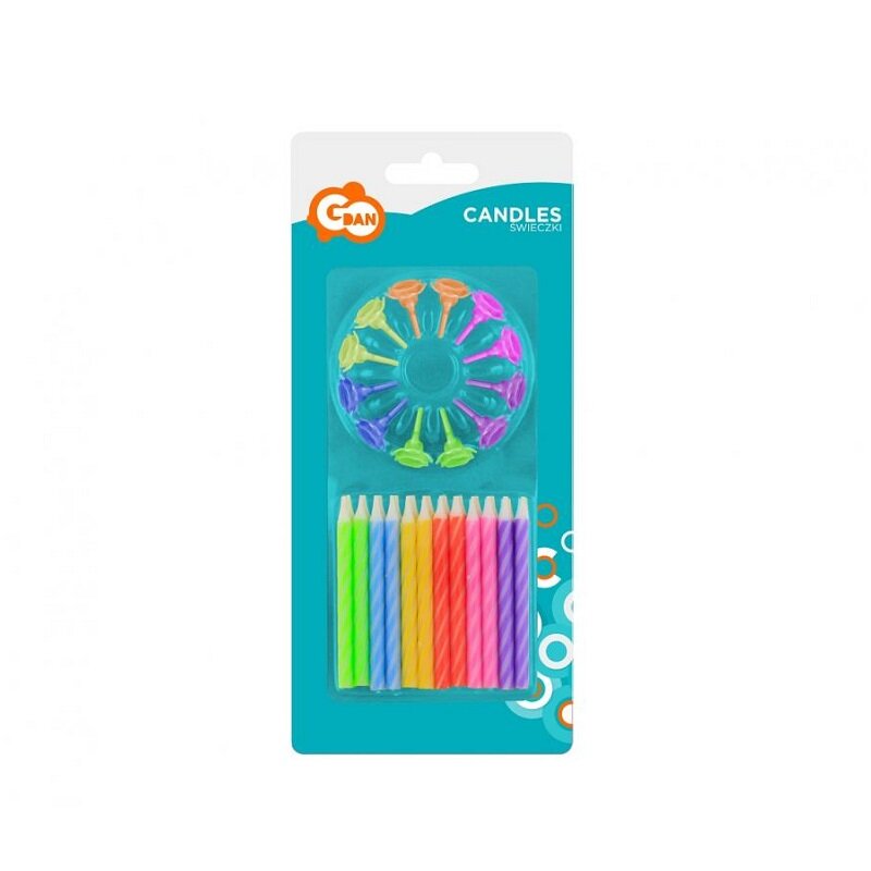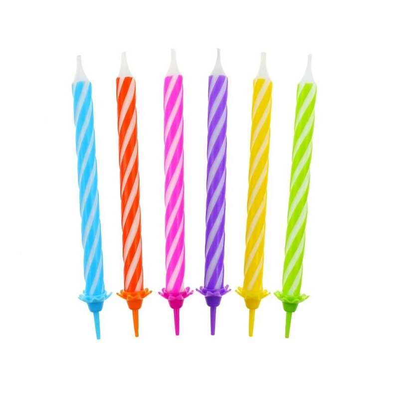Lys op festen med disse charmerende kagelys i regnbuefarver. Disse stearinlys er formet som skruer og tilføjer en unikt og sjov touch til din kage. Hver pakke indeholder 24 lys i opfriskende farver, komplet med 12 holdere til nem brug. Kagelysene er 8 cm høje.