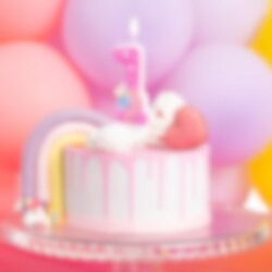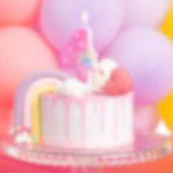 Fejr din fødselsdag med disse farverige tallys med motiver af søde enhjørninger! Kagelysene er 10 cm høje og findes i tallene 1 til 6.
