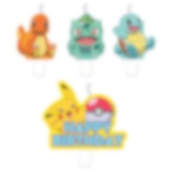 4 stk. kagelys med motiv fra det sjove tema Pokemon. Dekorer fødselsdagskagen med disse, så bliver den rigtig flot. Det ene lys er lidt større, ca. 8 cm bredt og tre af lysene er lidt mindre, ca. 3,5 cm x 3,5 cm.
