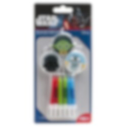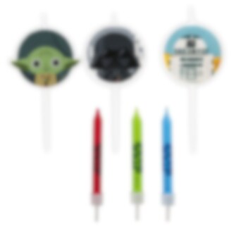 Lys op din Star Wars-temafest med disse kagelys! Pakken indeholder 15 lys med motiver fra den ikoniske filmserie. 3 af lysene er runde med en diameter på 3,5 cm.
