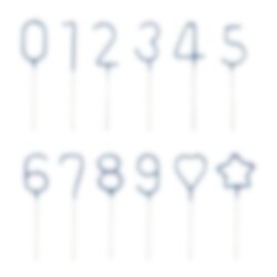 Blå stjernekastere i form af tallene 0-9 til at dekorere kagen til festen. Ud over tal er der også en stjerne og et hjerte. Stjernekasterne er 17 cm høje og sælges enkeltvis. De brænder i ca. 30 sekunder.