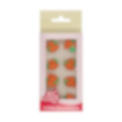 16 stk. sukkerdekorationer som forestiller små gulerødder. Sjovt at dekorere kagen eller bagværket til påske eller hvorfor ikke på en lækker god gulerodskage. Gulerødderne er cirka 1 x 2 cm.