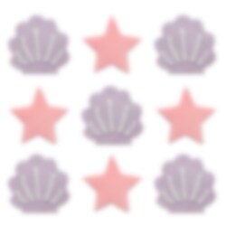 9 stk. sukker dekorationer der forestiller stjerner og skaller i pastellilla og -rosa. Dekorer din kage eller dine cupcakes med disse for at gøre dem ekstra flotte.