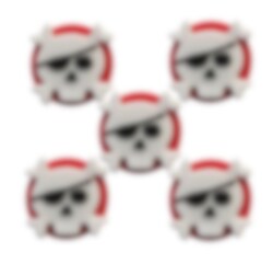 5 stk. seje sukkerpynter formet som dødningehoveder. Passer godt til at pynte kagen eller bagelser med.
