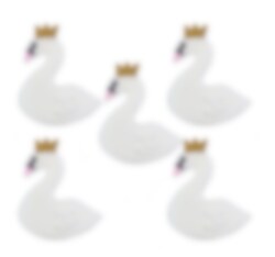 5 stk. sukkerdekorationer, der forestiller hvide svaner. En sød ting at dekorere kagen med til festen med svanetema.