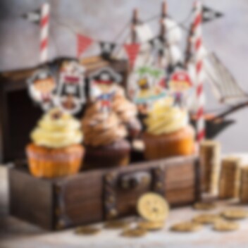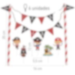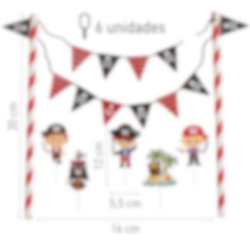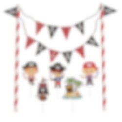 Giv børnefødselsdagen en rigtig piratudtryk med dette kagedekorationssæt! Med pirater, et skattekort, et piratflag og en guirlande bliver kagen en del af et spændende sørøvereventyr. Guirlanden er 20 cm høj, mens kagedekorationerne er mellem 5,5 og 12 cm – perfekt for små sørøvere, der elsker piratfester!