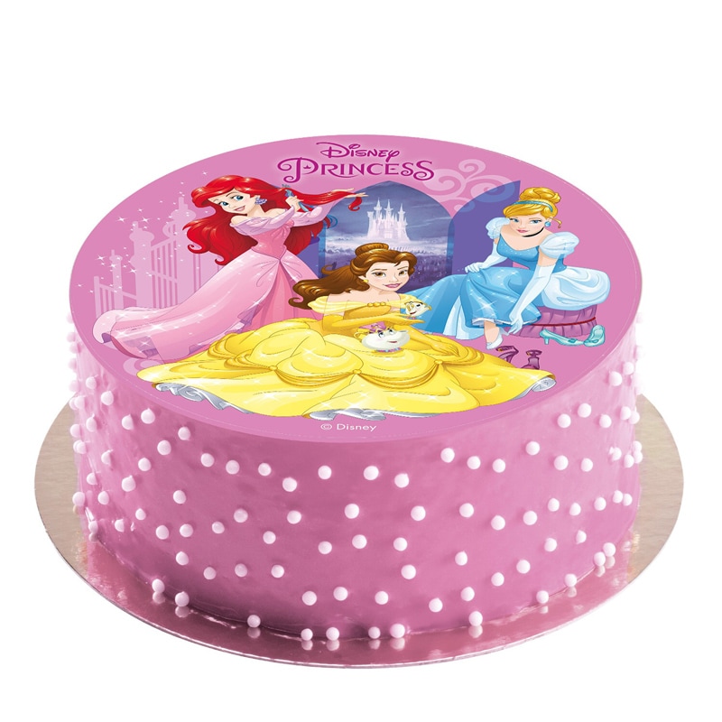 Smukt og farverigt kageprint af vaffelpapir med motiver af Disney Prinsesse. Bag din egen personlige kage til børnefesten. Printet, der er 20 cm i diameter, er let at bruge. Kageprinter af vaffelpapir er glutenfri og laktosefri og har ikke tilsat sukker.