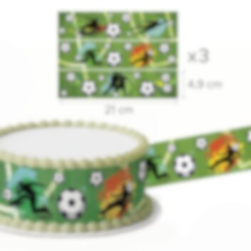 ✔ Indeholder 3 dekorationsbånd i fodboldtema (ca. 21 x 5 cm)
