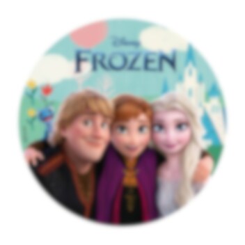 Kagebillede af sukkerfri fondant med flot motiv af Kristoffer, Anna og Elsa fra filmen Frost 2. Kagebilledet er klar til at blive lagt direkte på kagen og har et skarpere og mere detaljeret print end et billede af vaffelpapir har. Derudover har billedet en god vaniljesmag. Billedet er 20 cm i diameter