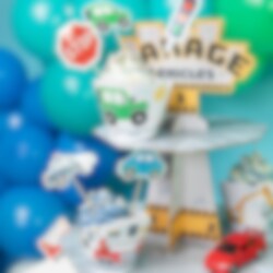 Sej ballongguirlande med forskellige køretøjer og trafiklys, perfekt til en fødselsdag med køretøjstema! Guirlanden er 206 cm lang, og hver ballon måler 34 cm. Ballonerne har en selvforseglende ventil, og du kan nemt puste dem op med en ballonpumpe eller det medfølgende sugerør.