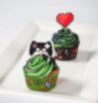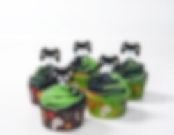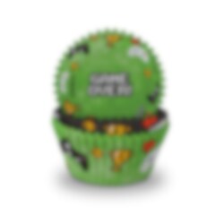 75 stk. fede muffinsforme i grøn med spilmotiver. Perfekt til at bage muffins i og servere for gæsterne til festen med spiltema. Muffinsformene er ca. 5 cm i bunden.