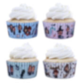60 stk. fantastiske muffinforme i fire forskellige modeller, hvor du får 15 stk. af hver model. Alle har smukke motiver fra Harry Potters verden og er perfekte til en fødselsdag med Harry Potter-tema.