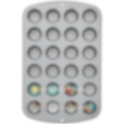 En praktisk non-stick muffinbakke til 24 mini muffins. Den non-stick-belægning gør det nemt at få muffins ud. Det er også muligt at bruge muffinforme med en bunddiameter på 3,5 cm. Bakken måler 40 x 26 cm og er lavet af aluminium af høj kvalitet, så den skal vaskes i hånden.