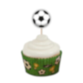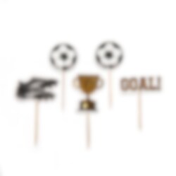 12 stk. partypicks med fodboldrelaterede motiver i farverne sort, hvid og guldfolie. Pynt dine muffins, cupcakes eller andet godt med disse for et flot look inden festen med et sjovt fodboldtema.