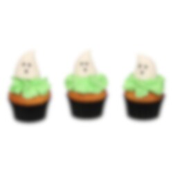 3 stk. sukker dekorationer, der repræsenterer små søde 3D-spøgelser. Perfekt til at dekorere tærten eller cupcakes med, når det er tid til en fest eller fest.