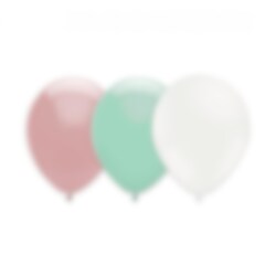 15 stk. latexballoner i farvekombinationen rosa, mintgrøn og hvid. Der er 5 balloner i hver farve.