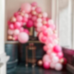 Virkelig stor ballonbue i lyserøde og rosaguldtoner, som du selv bygger. En virkelig imponerende dekoration, der er velegnet til både fester, fødselsdage eller bryllupper. Pakken indeholder hele 200 stk. balloner i forskellige størrelser og tilbehør. Ballonbuen er cirka 12 meter lang.