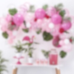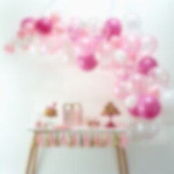 Elegant ballonbue i lyserøde og hvide farver, som du selv kan sammensætte derhjemme. Den perfekte dekoration til enhver festlig lejlighed. Pakken inkluderer 70 stk. balloner samt en vejledning på engelsk, der viser hvordan du sammensætter ballonbuen. Ballonbuen bliver ca. 4 meter stor.