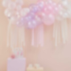 Flot ballonstel i perle- og elfenbenshvide toner, som du selv bygger. En virkelig imponerende dekoration, der egner sig til både fester, sammenkomster eller bryllupper. Pakken indeholder hele 47 stk. balloner i forskellige størrelser og tilbehør. Ballonbuen er omkring 3 meter lang.