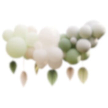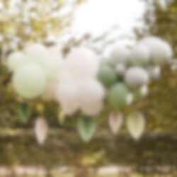 Sød ballonguirlande i grønne og hvide toner med dekorative palmeblade, som du selv samler.