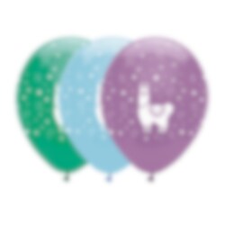 6 stk. balloner i farverne blå, grøn og lila med et motiv af en festlig lama. En perfekt dekoration at have med til din fest med lamatema. Ballonerne får en diameter på ca. 30 cm når den er oppustet.