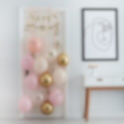 9 x balloner i farverne fersken og lyserød (30,48 cm i diameter) med teksten "Happy Birthday"