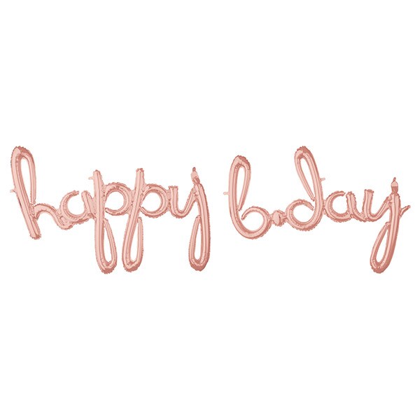 Folieballon, der danner ordene "Happy B-Day" i rosaguld. En flot ballon at medbringe til festen. Folieballonen er opdelt i 2 dele og delene er ca. 99 x 68 cm og 93 x 68 cm store. Pakken indeholder også 1 stk. snor og 1 stk. plastrør, der bruges til at oppuste ballonen med. Folieballonen kan let blive oppustet med normal luft.