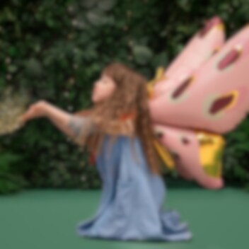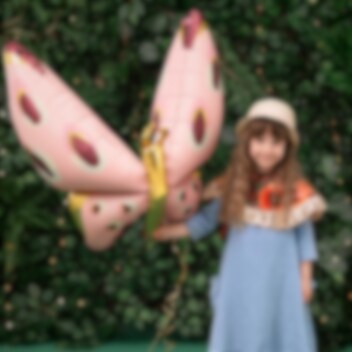 Virkelig fancy folieballon, der forestiller en sommerfugl i pink med guldfoliedetaljer. En imponerende dekoration, som du kan tage med til din fest for et fint look.