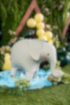 Denne elefantballon er en rigtig øjenfanger takket være sin 3D-form og bløde, lyse tone med lyserøde kinder og en gylden detalje på øret. Stor nok til at stå på gulvet og dominere dekorationen til junglefest eller safarifest.
