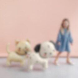 En sød lille kat på hjul, der kan rulle rundt på gulvet, lige så sjov at lege med som at dekorere med! De varme farver og det legesyge design passer perfekt til katte-fødselsdage og andre børnefødselsdage.