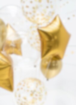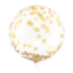 En stor gennemsigtig kugleformet ballon fyldt med skinnende guldkonfetti. Denne smukke konfettiballon er perfekt til enhver festlig lejlighed.