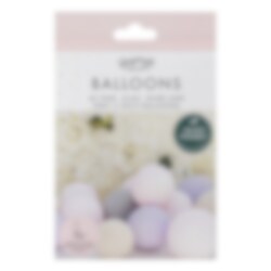 Disse balloner er perfekte til at bruge til mange flotte dekorationer. De er gode til at sætte i ballonbokse eller til at lave din egen ballonbue. Ballonerne er 12 cm i diameter oppustet og kan pustes op med luft eller helium. Hver pakke indeholder: 10 beige balloner 10 balloner. lilla balloner 10 stk. grå balloner 10 stk. lyserøde balloner Latexballoner er bionedbrydelige, og emballagen er genanvendelig og FSC-certificeret.