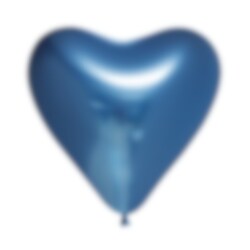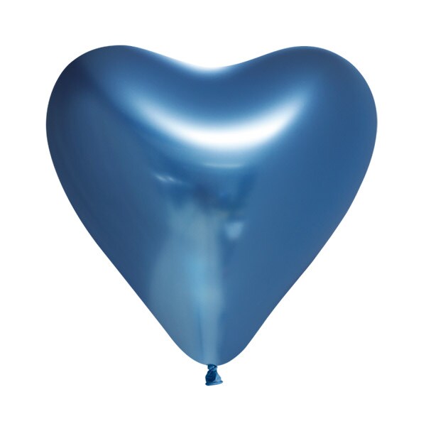 6 stk. hjerteformede balloner med mirror effekt, i farven blå. Fine balloner der er gode til at pynte på til festen, et babyshower eller dåben. Balloner får en diameter på ca. 30 cm når de er oppustet, og kan fyldes med normal luft eller helium. Ballonerne er lavet af 100% naturlig gummilatex.