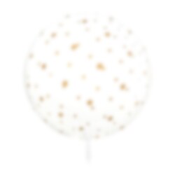 Rund gennemsigtig ballon dekoreret med guldprikker. Denne stilfulde ballon passer til alle festlige lejligheder.