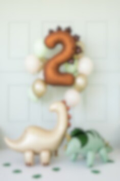 En fed dinosaurballon formet som tallet 2, der bliver et rigtigt blikfang til festen. Den varme brune farve med dekorative dinosaurpigge giver en sjov og cool stemning.