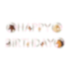 Papguirlande i hvid og lyserød med motiv af påskriften "Happy Birthday" samt heste og blomster. En dejlig dekoration at hænge op før hestefesten.