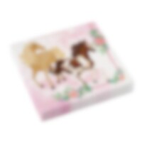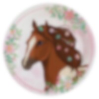 8 stk. udskårne invitationer i flotte farver og med et sødt motiv af heste og blomster. Brug disse til at invitere dine venner til en sjov fest med hestetema.