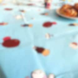 Stilfuld papirdug i lyseblå med smukke motiver fra Alfons Åberg. Dugen er ca 120 x 180 cm.