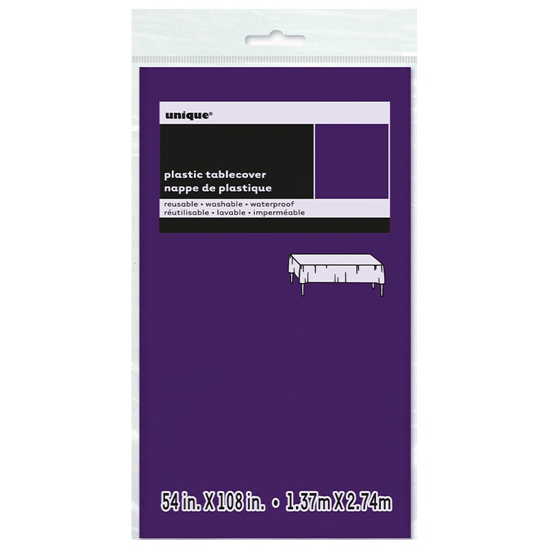 Borddug af plastik i en mørkelilla farve. Et fint tilbehør at have med til festen eller andre festlige lejligheder. Dugen er ca. 1,37 x 2,74 m.